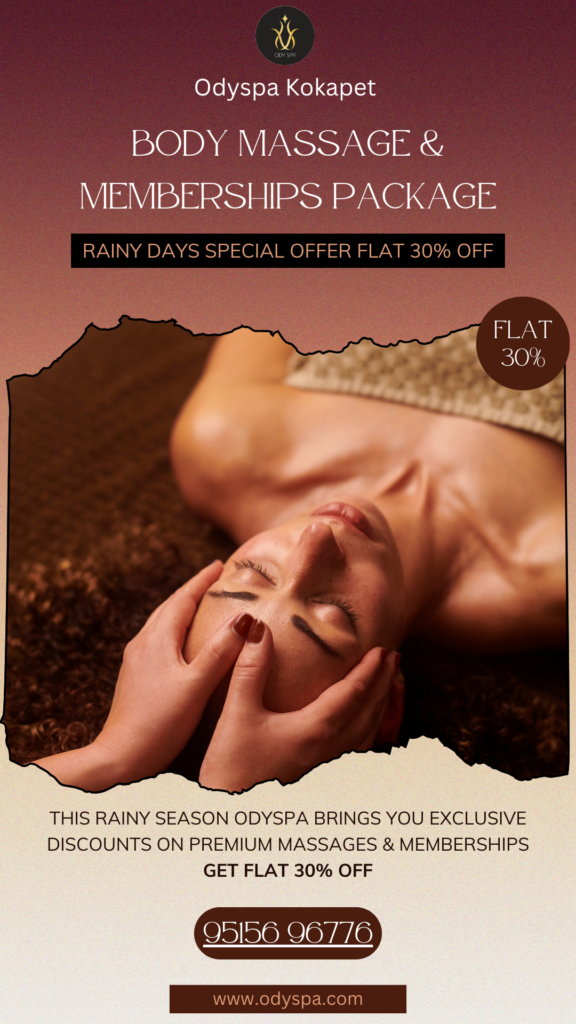 Odyspa rainy days special Sale – Flat 30% off on Full Body Massages and Membership Packs. Odyspa is the best Massage spa in kokapet hyderabad. Let come and relax your body with this offer in this rainy season